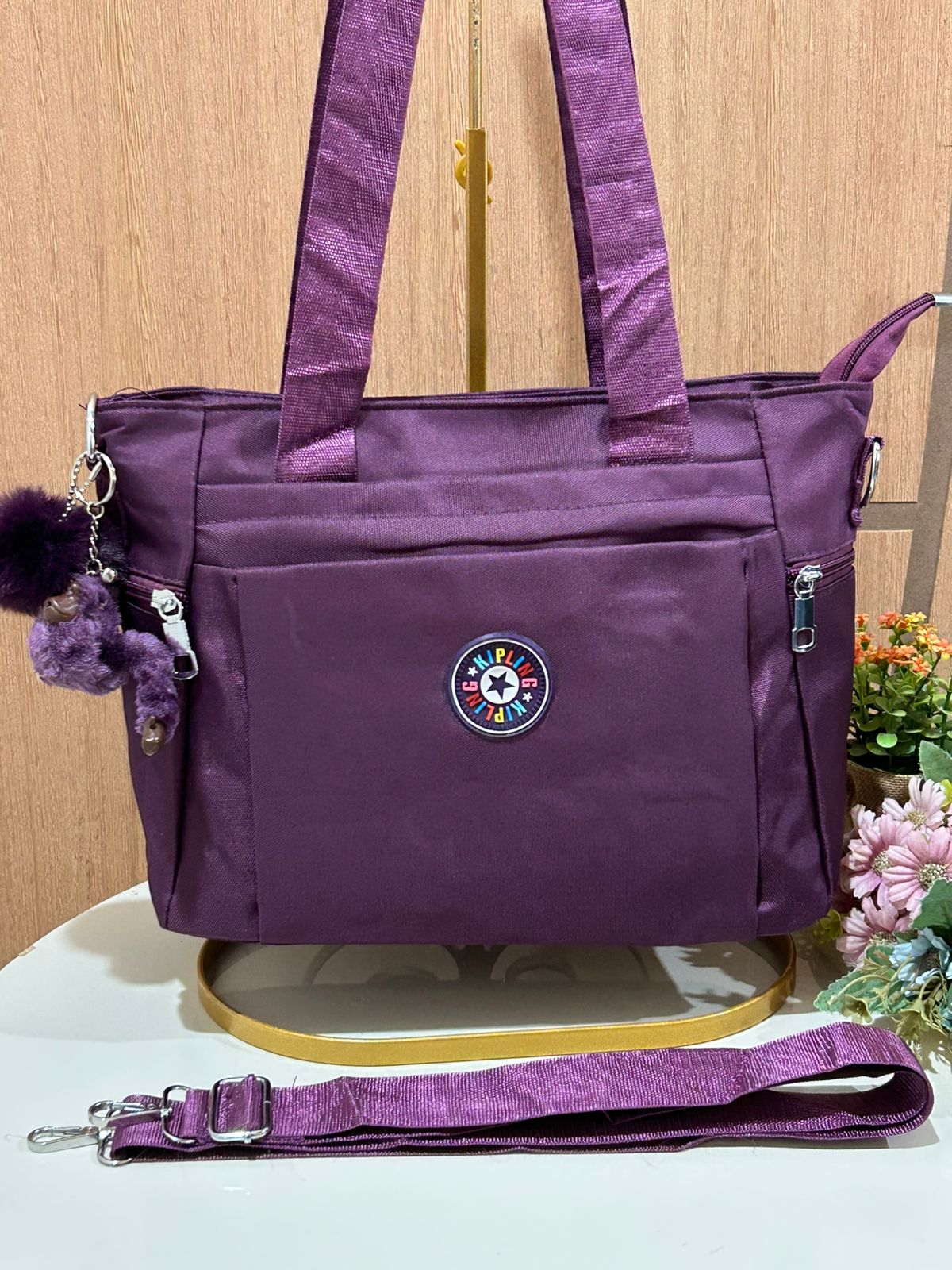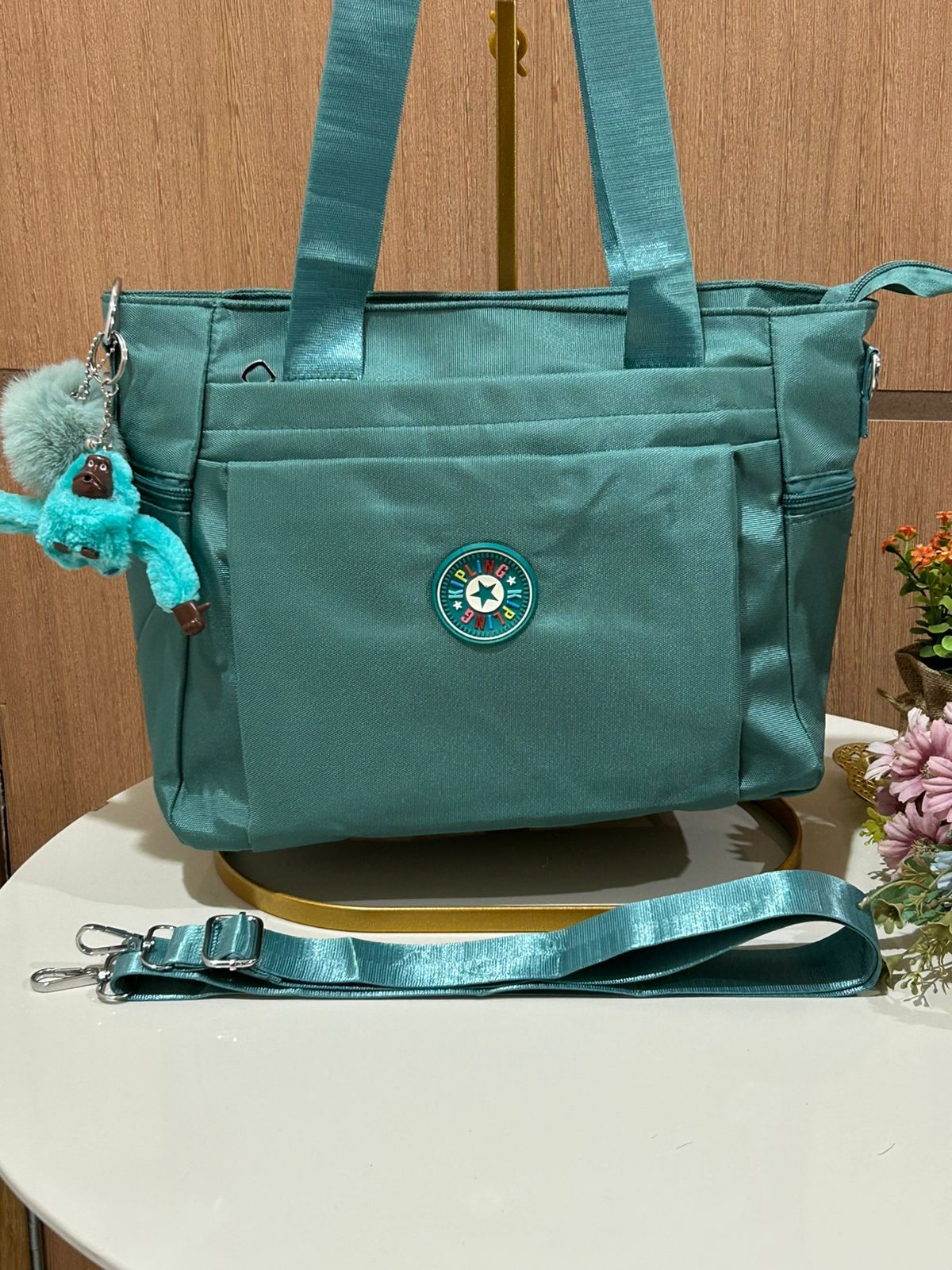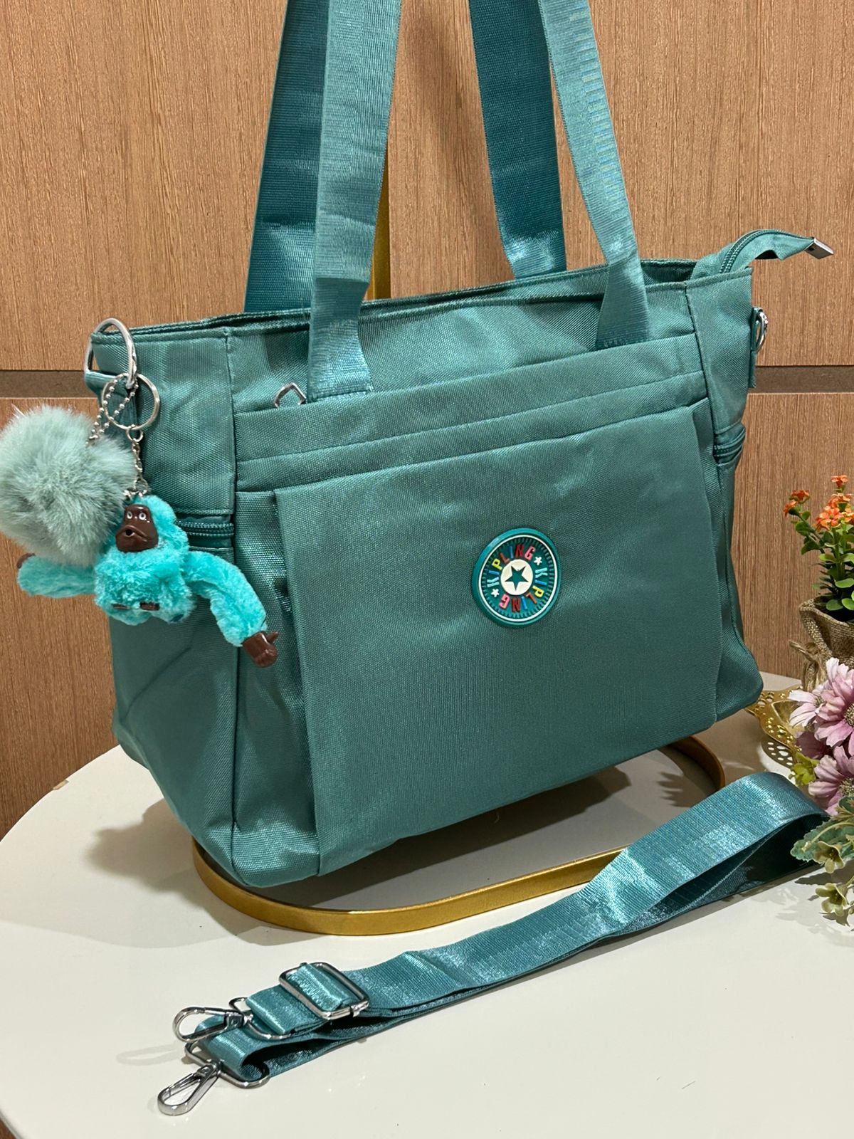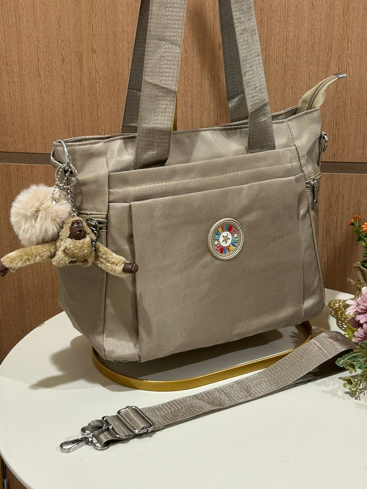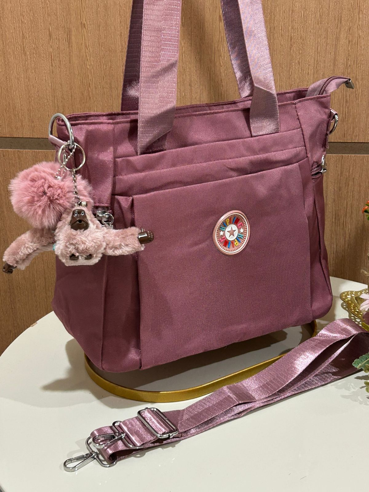 Bolsa Kipli Transversal Bolso Frontal C/ Bolsos Laterais C/ Ziper(Acompanha Pompom e Chaveiro Macaco Em Cores Aleatórias)