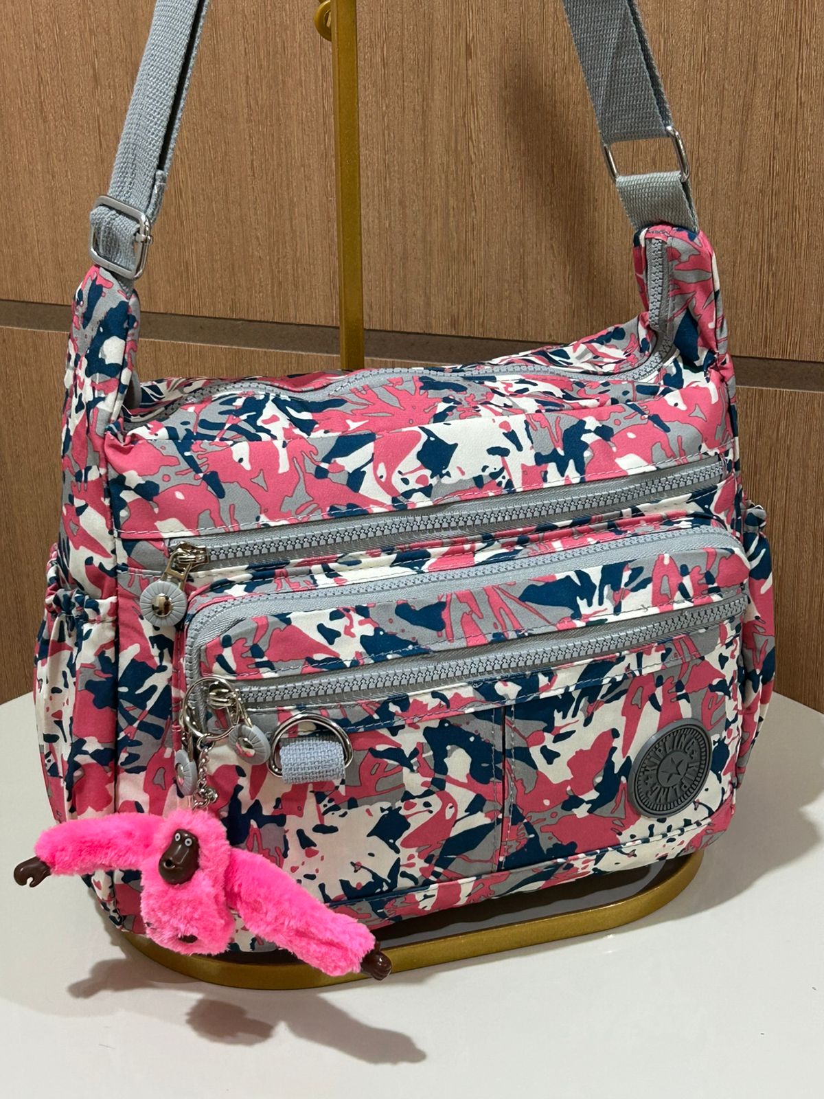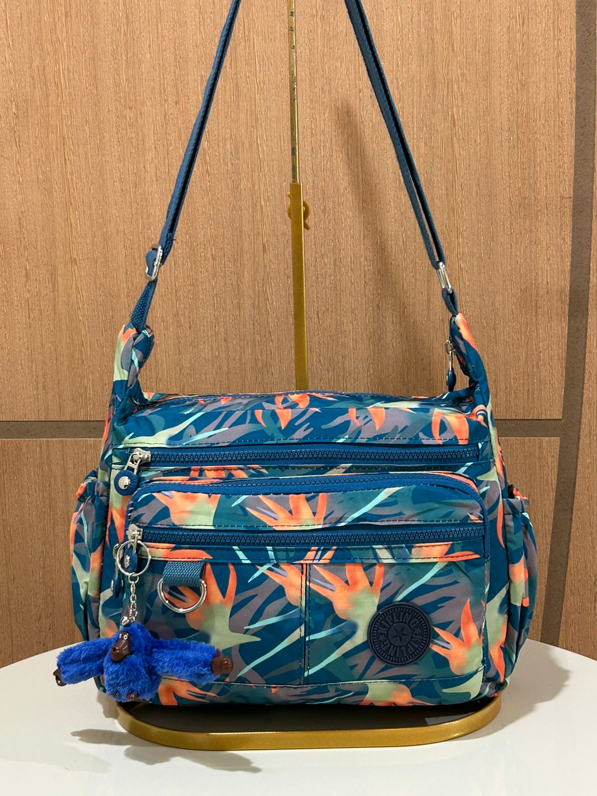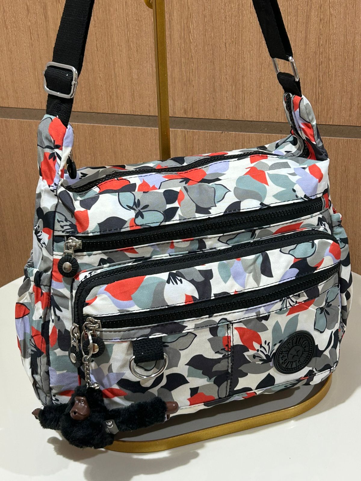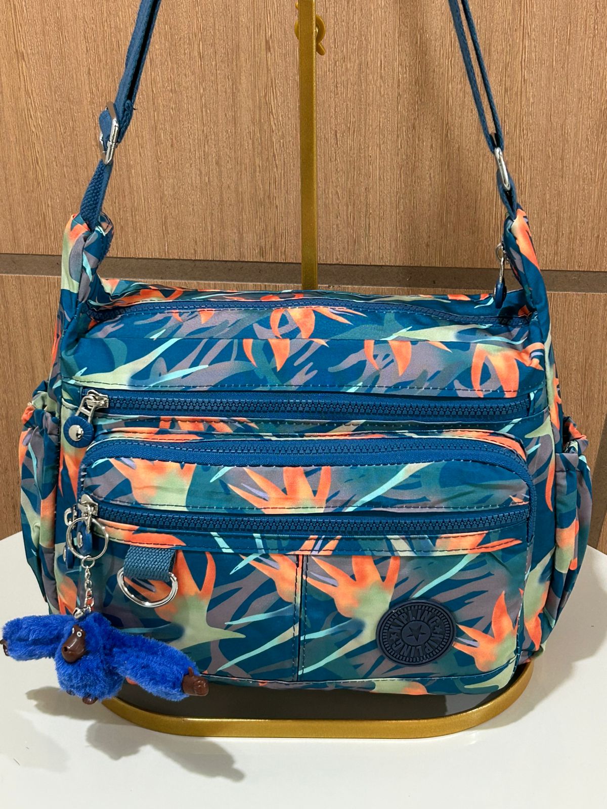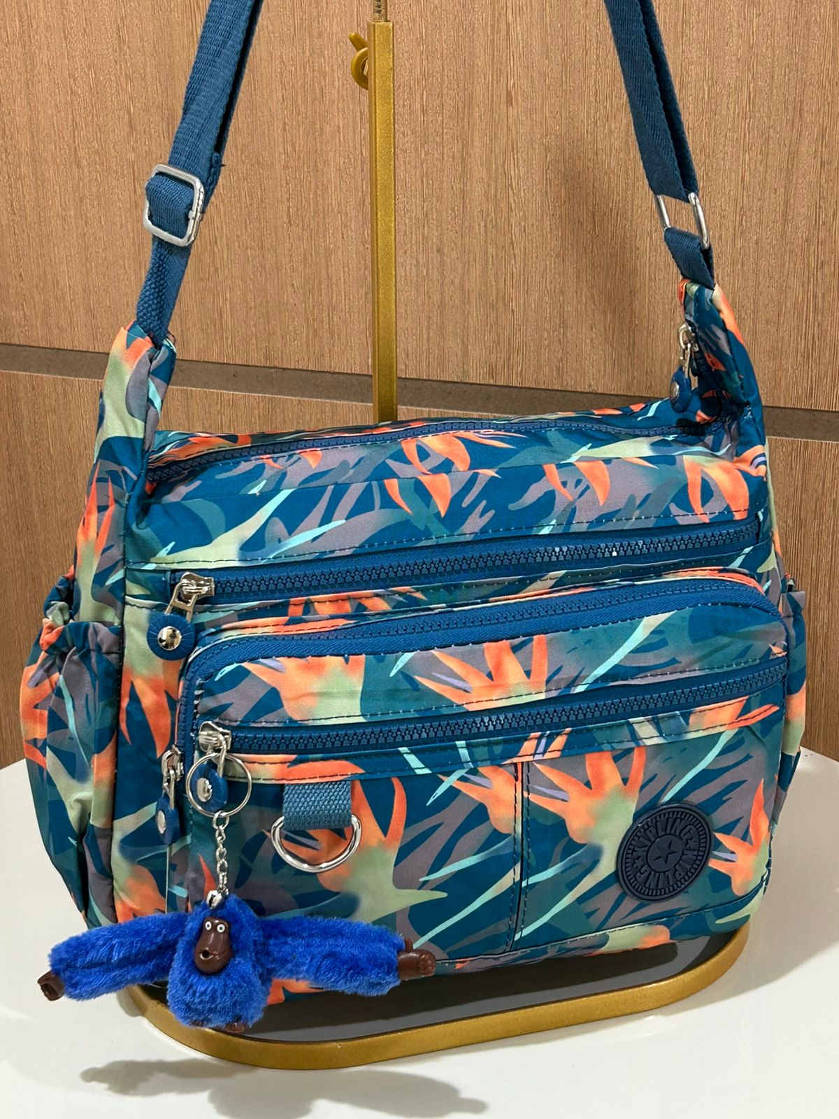 Bolsa Kipli Transversal Estampada (Acompanha Chaveiro Macaco Em Cores Aleatórias)