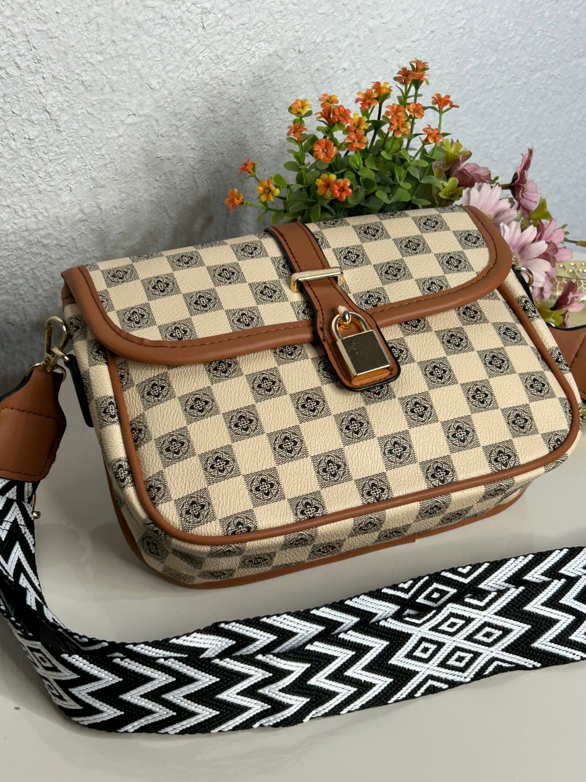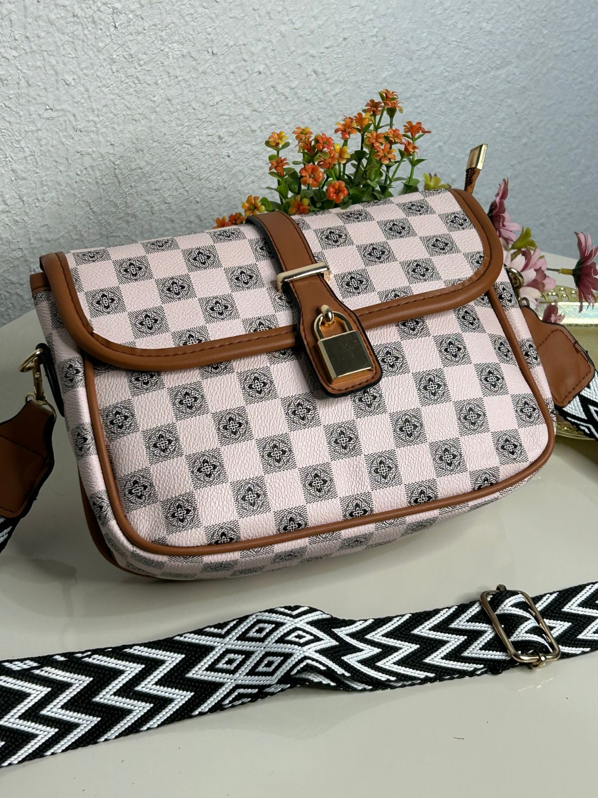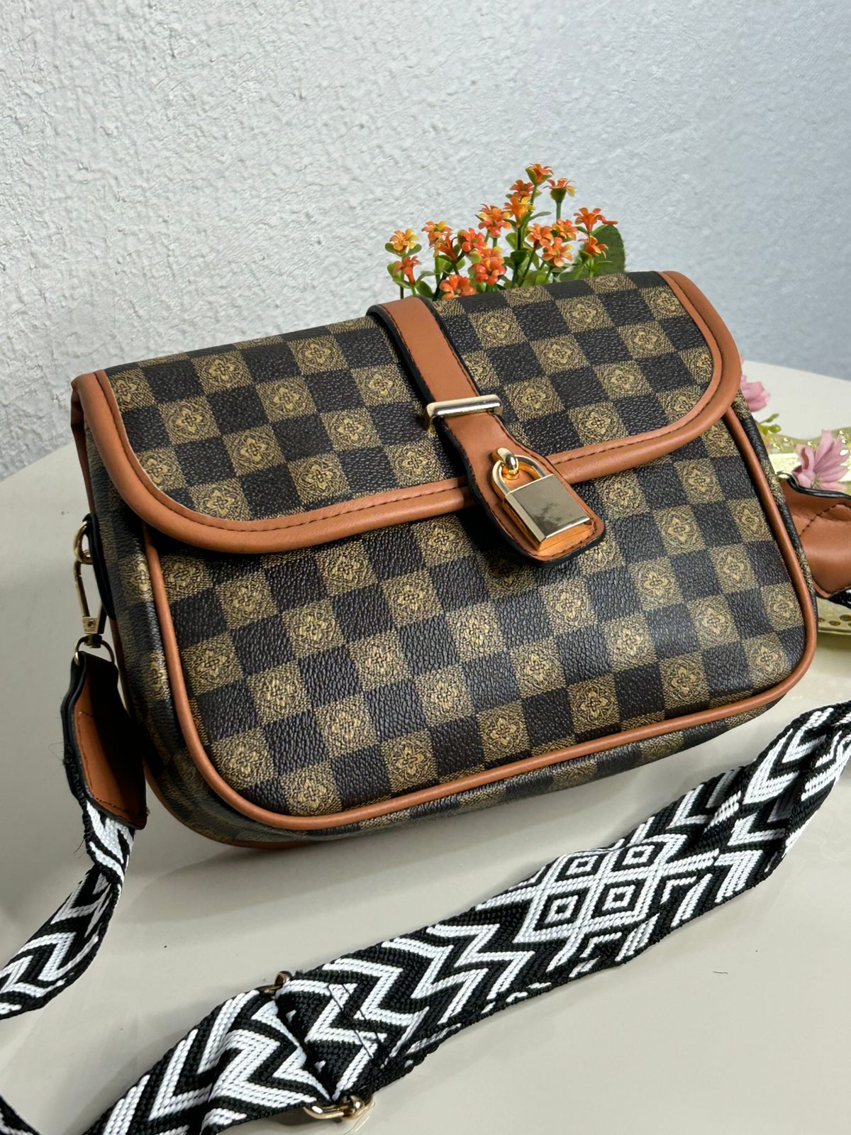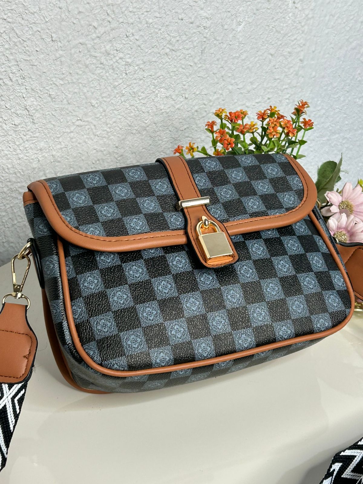 Bolsa Transversal Xadrez Alça Gorgurão