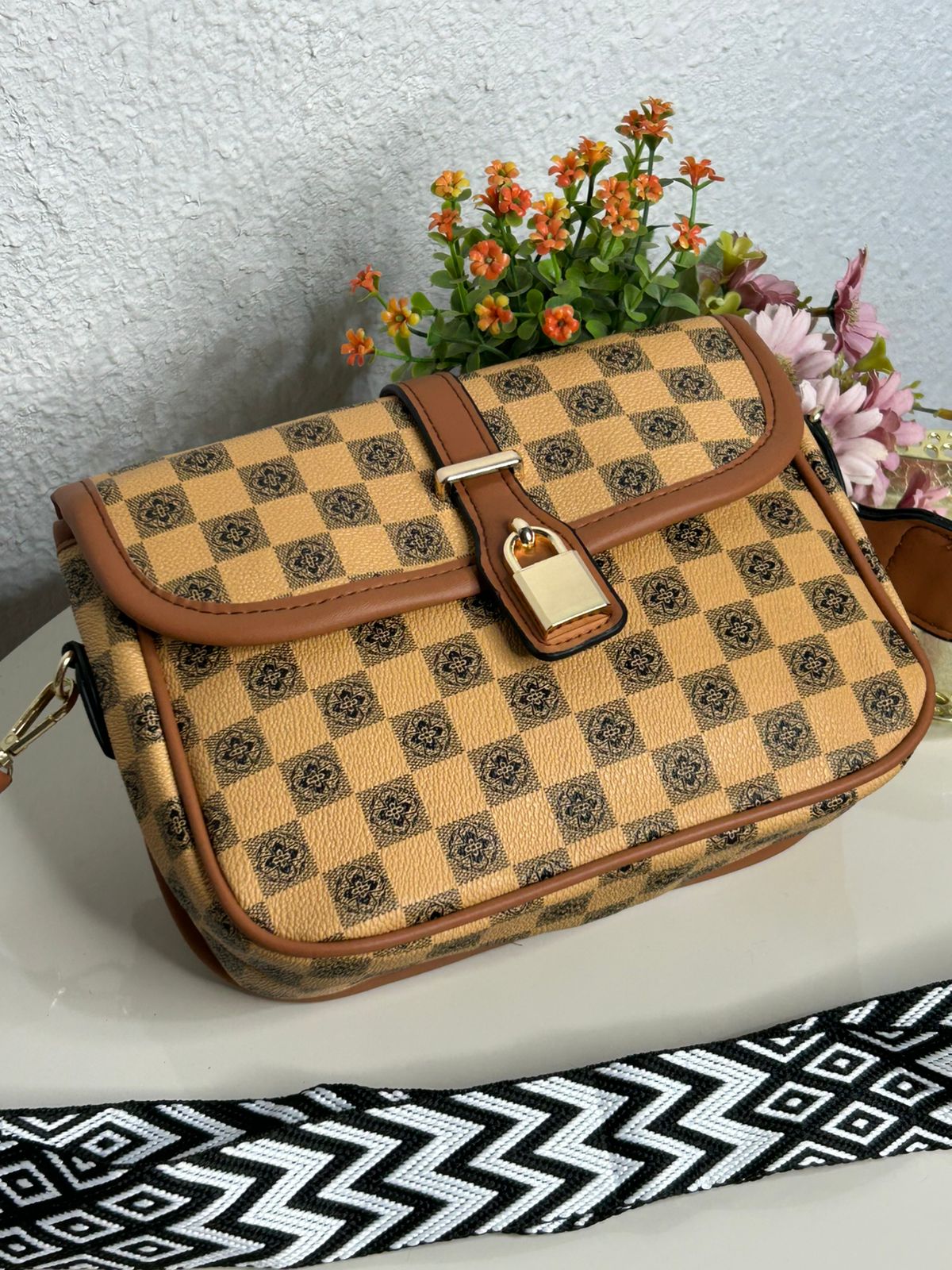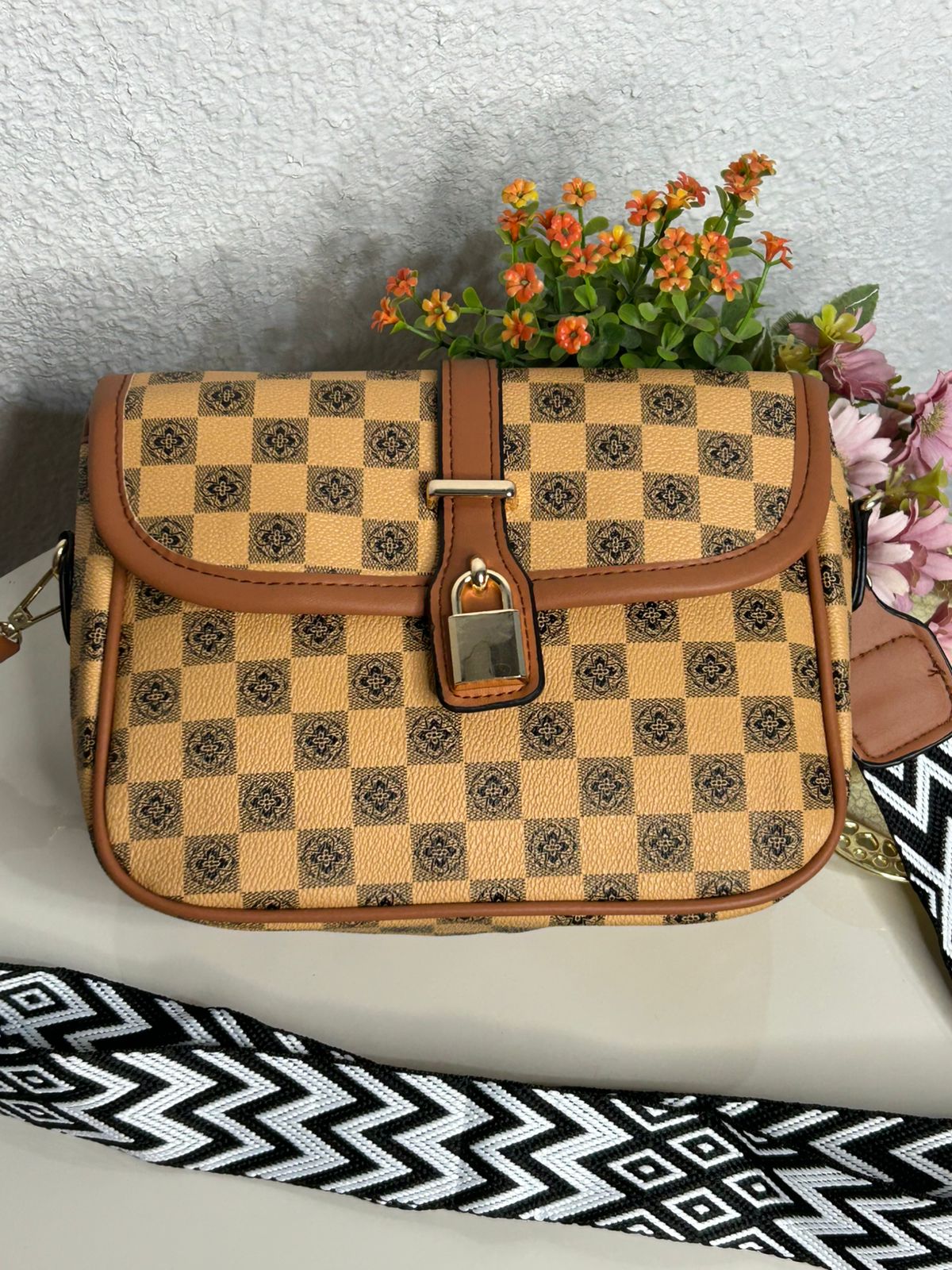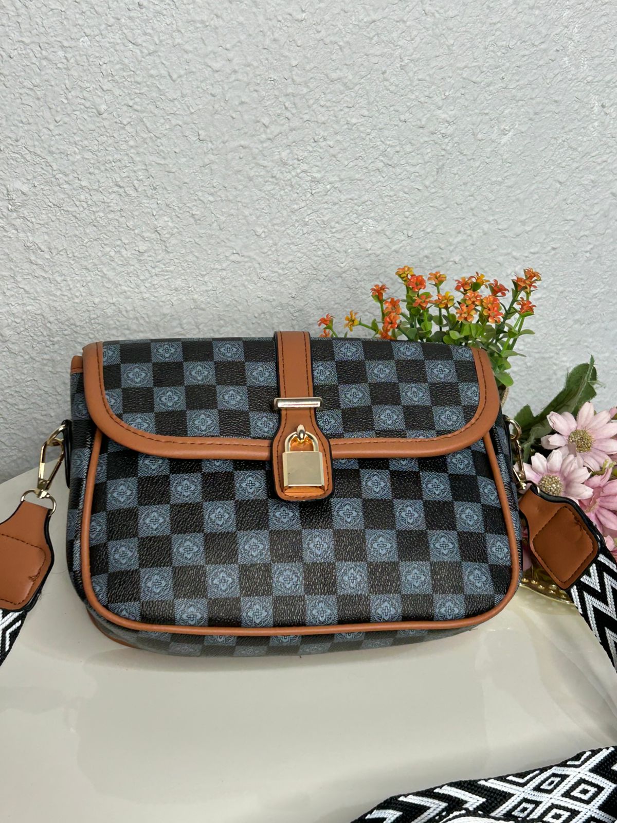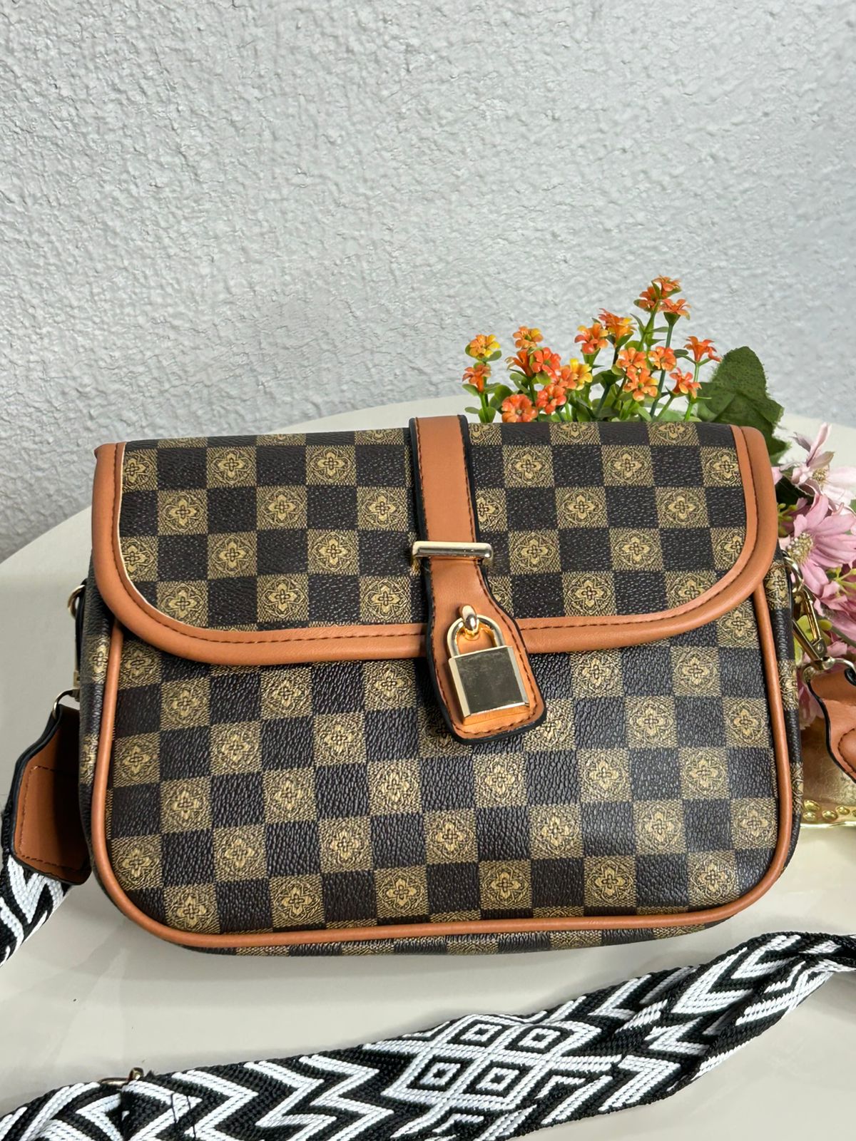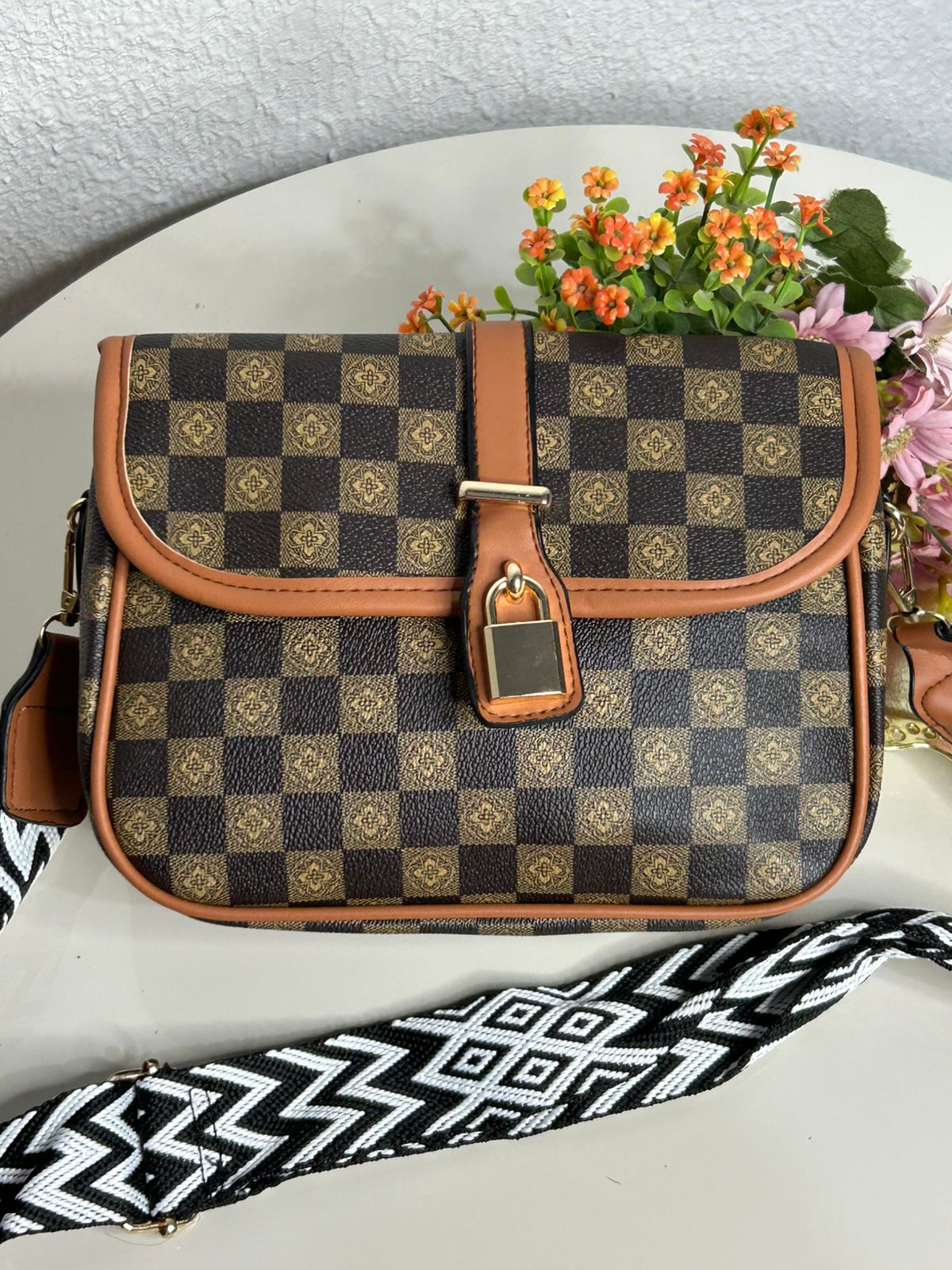 Bolsa Transversal Xadrez Alça Gorgurão