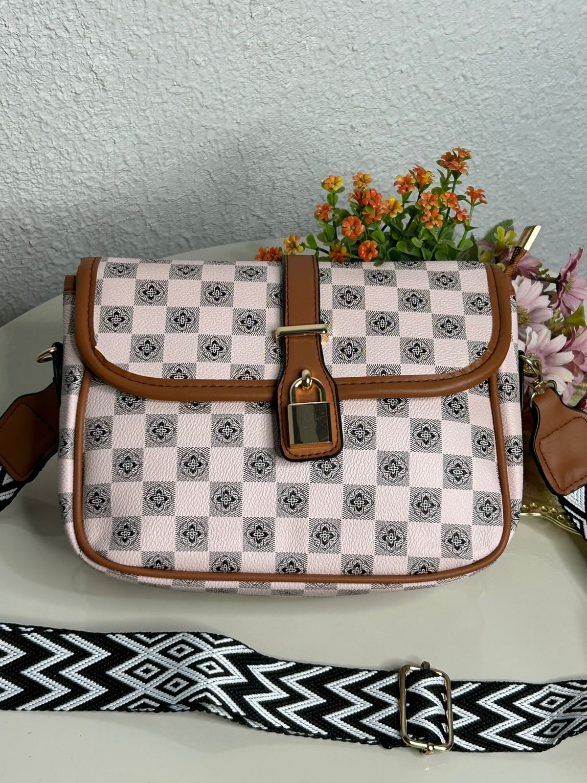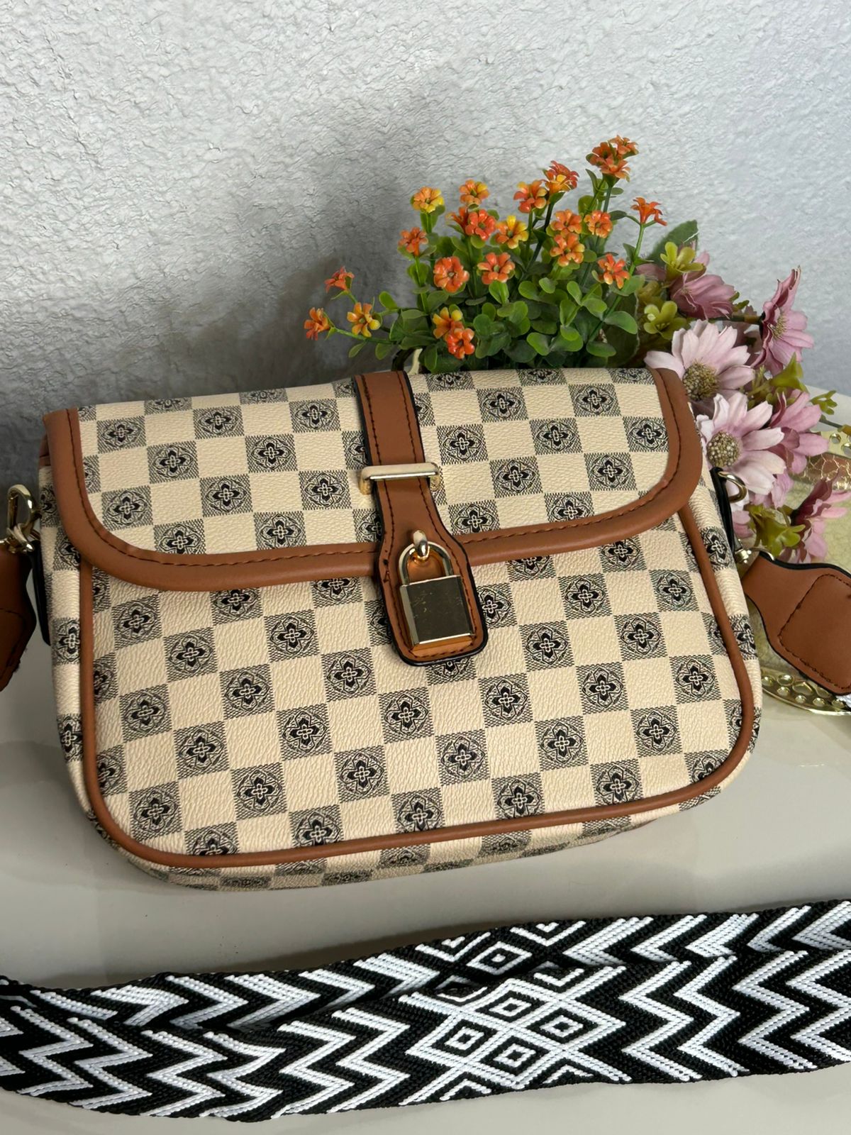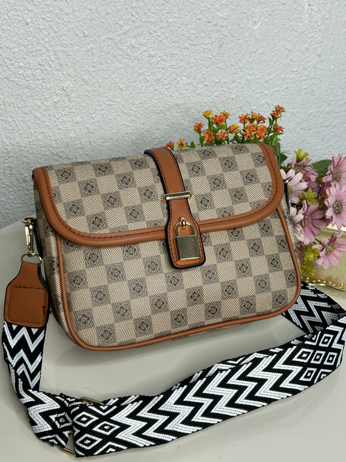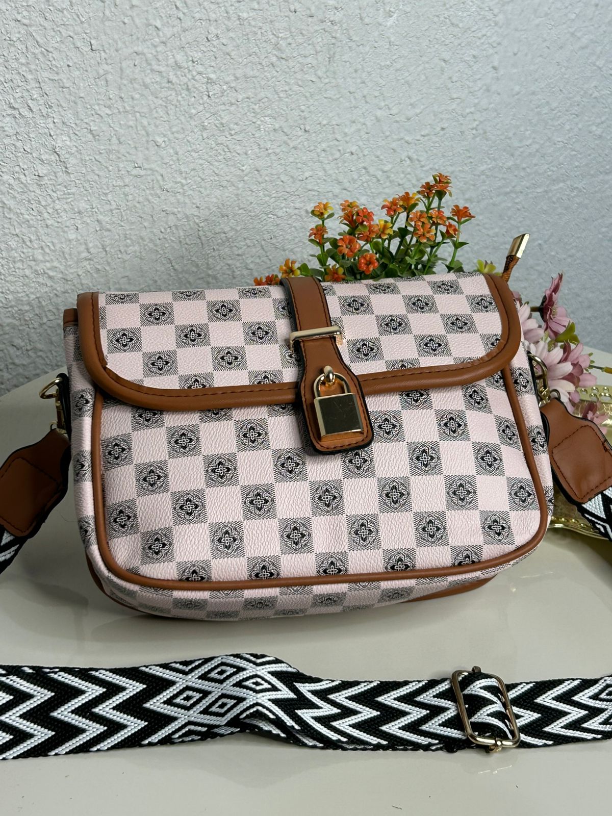 Bolsa Transversal Xadrez Alça Gorgurão