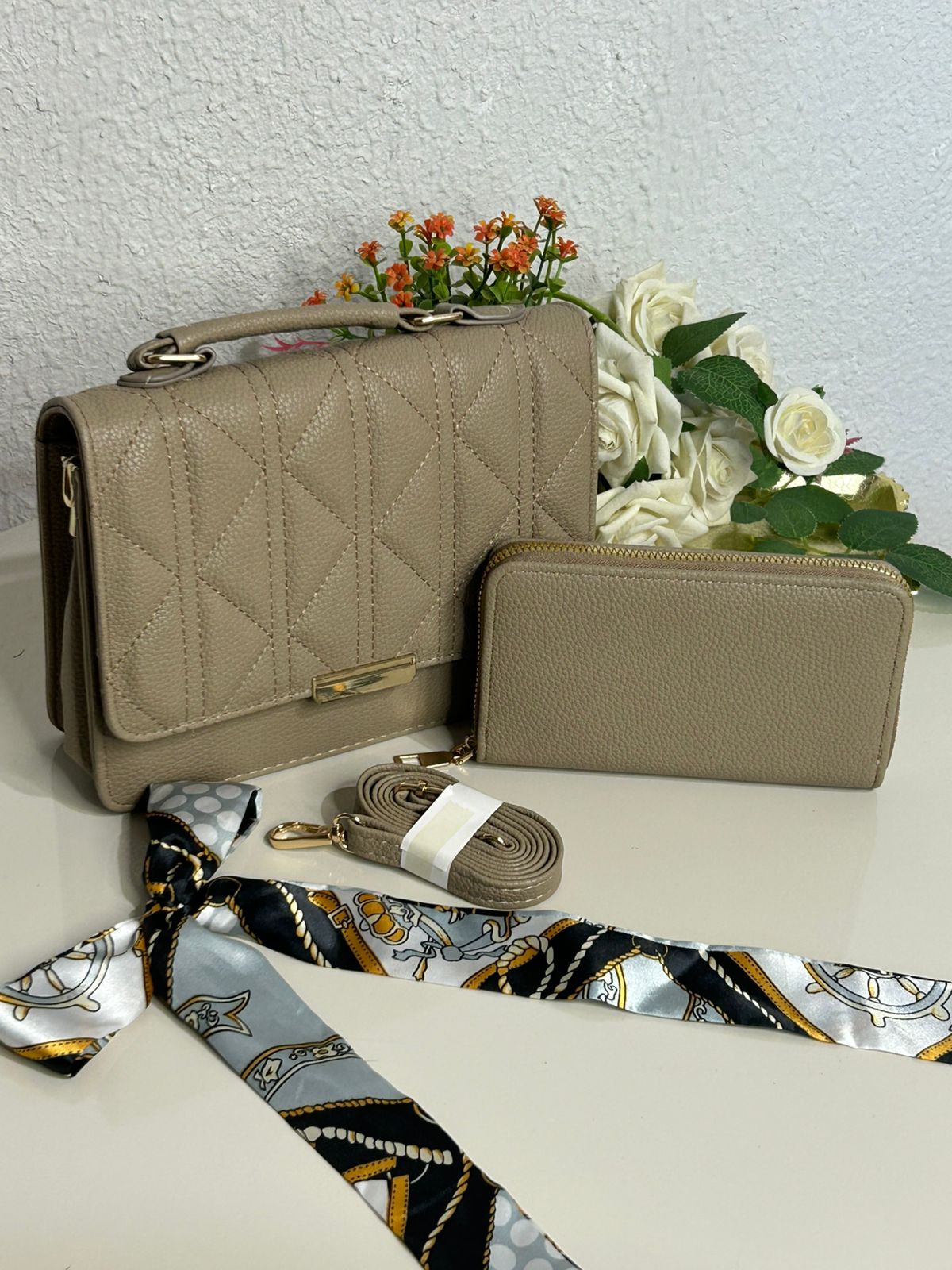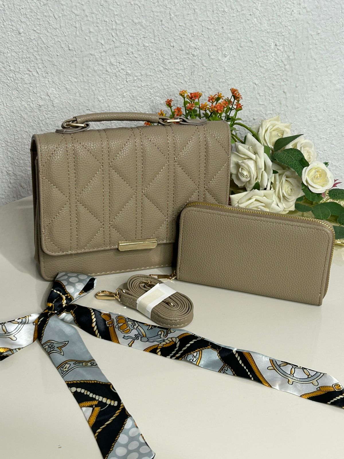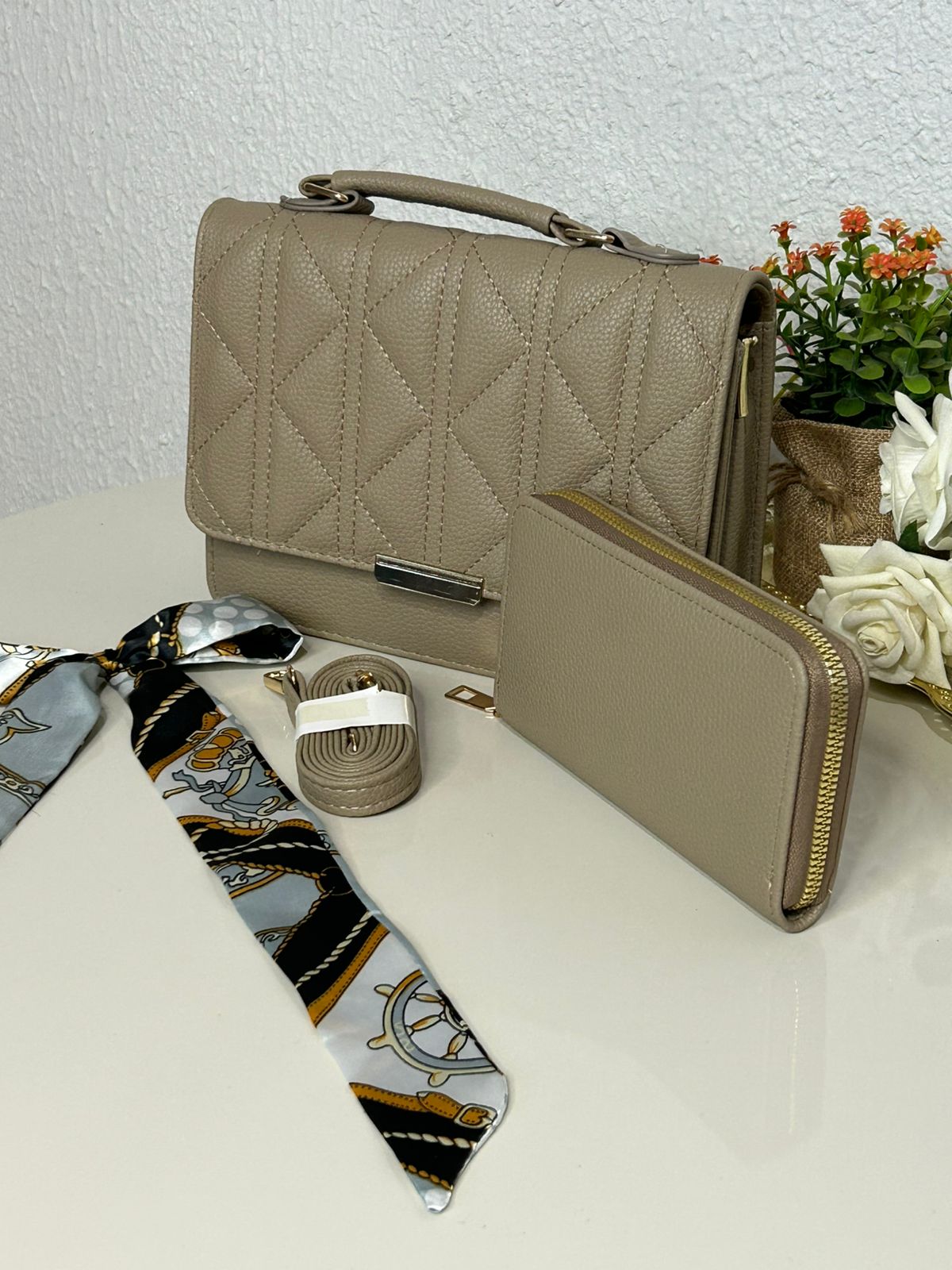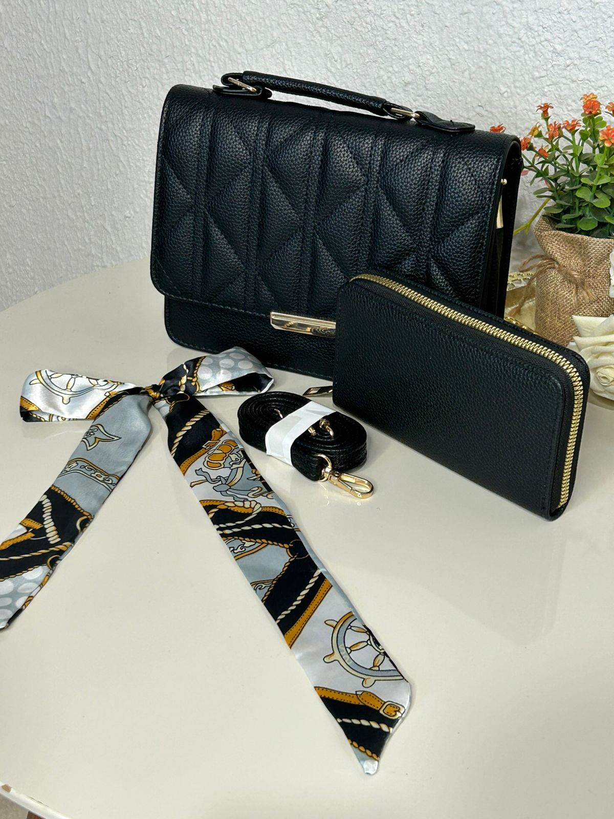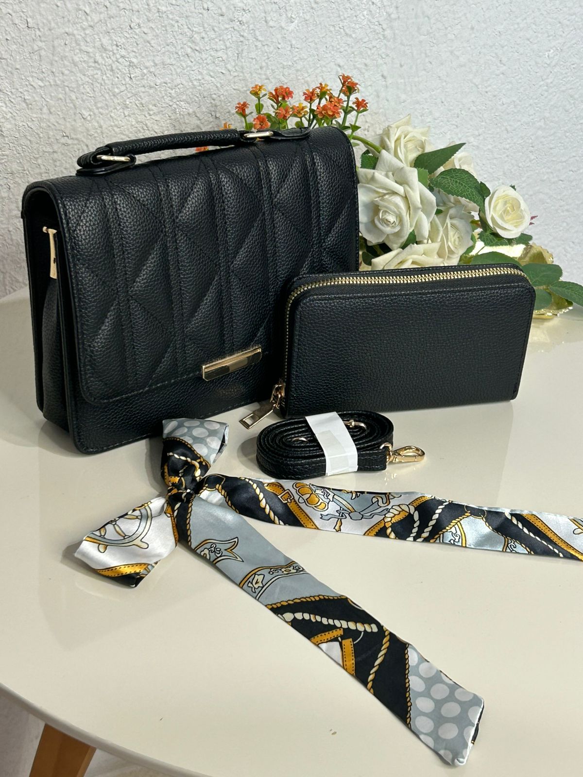 Kit Bolsa Matelasse+Carteira+Lenço (REF: MLY122)