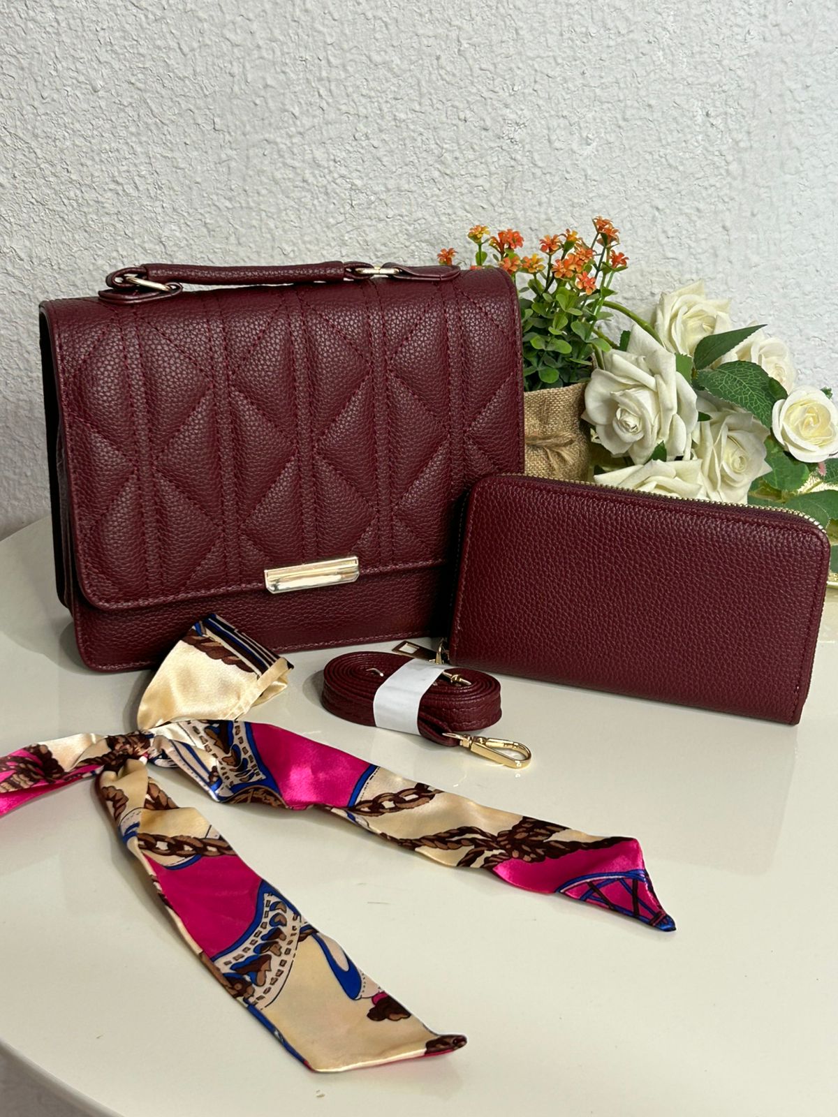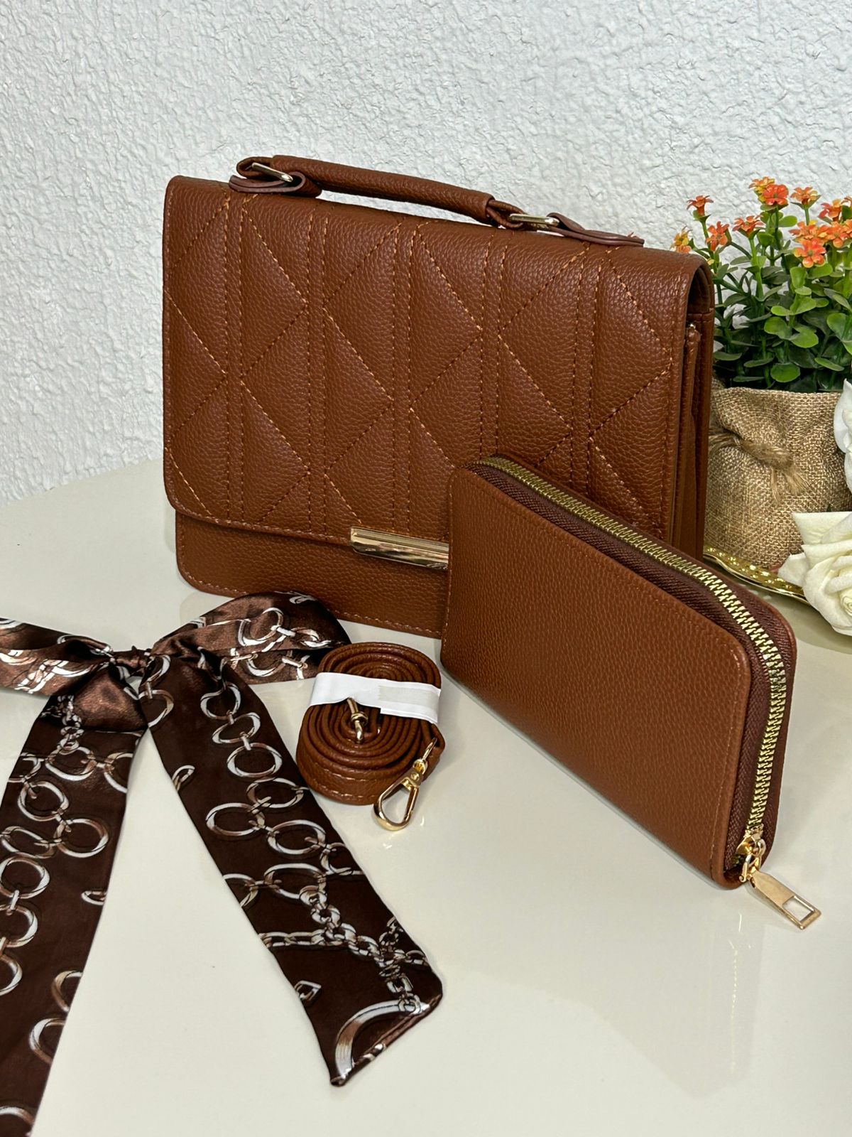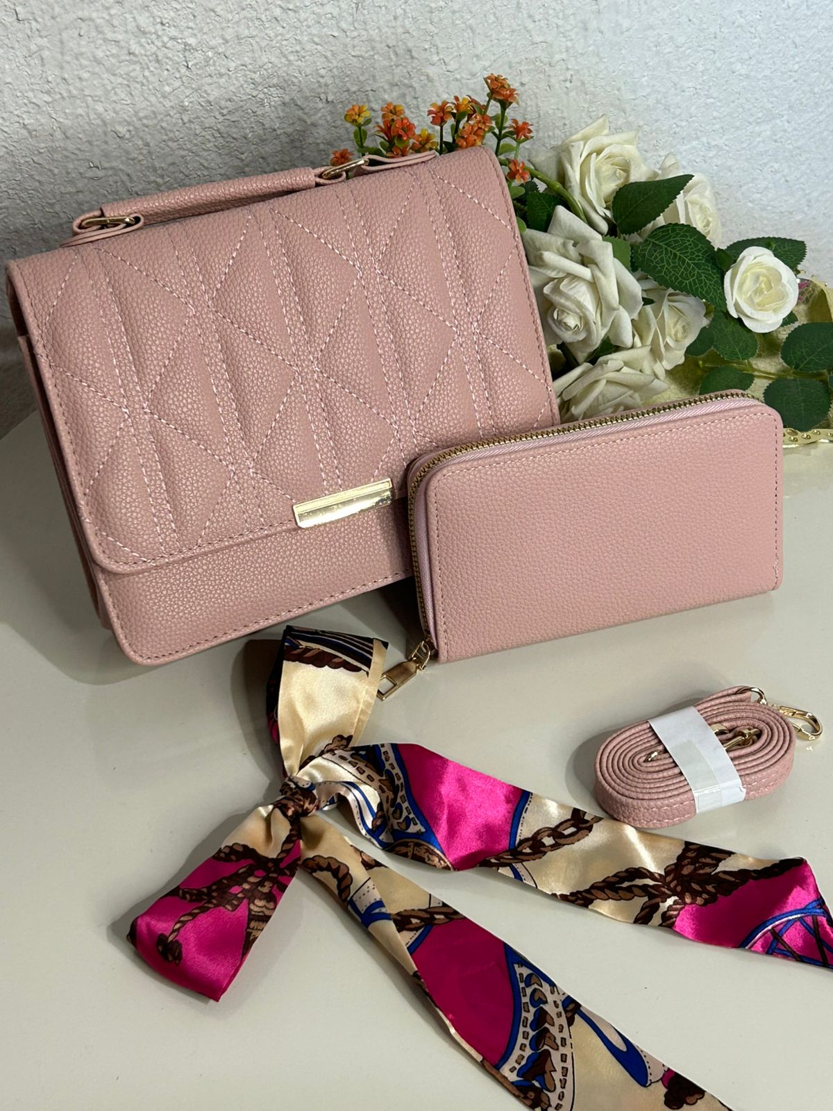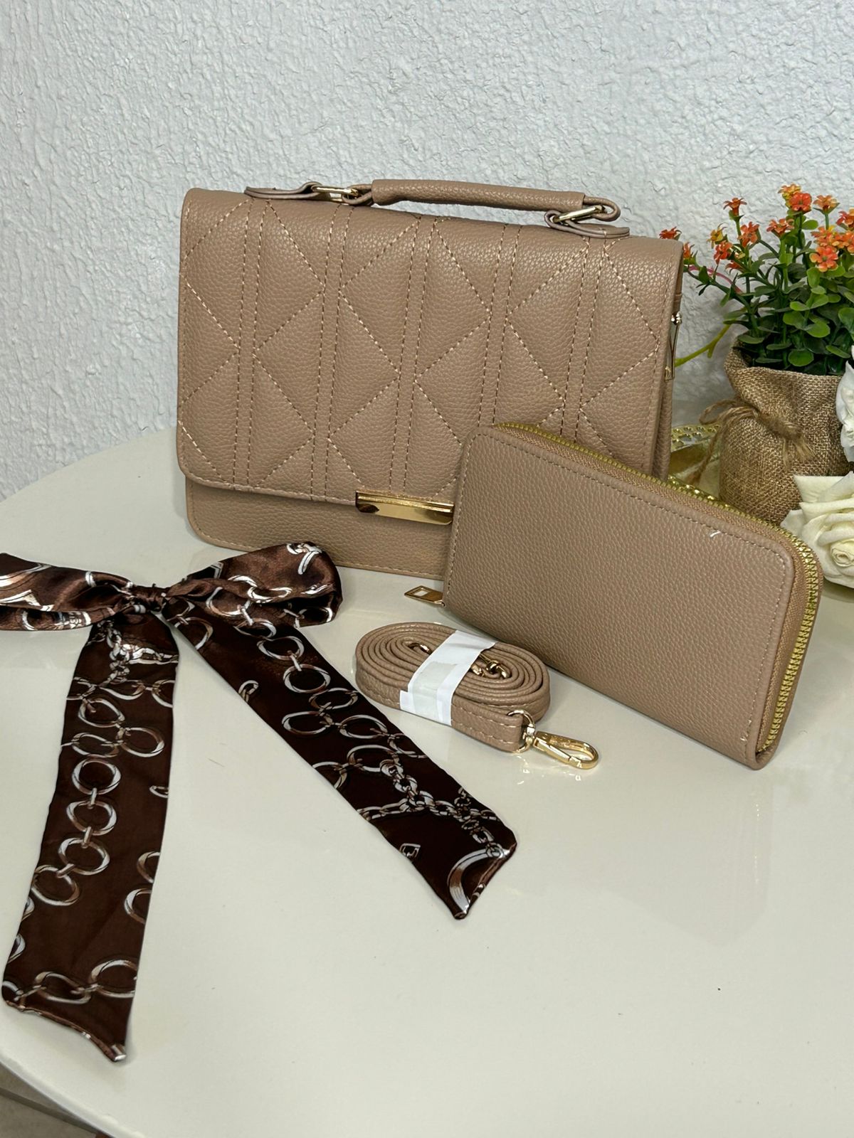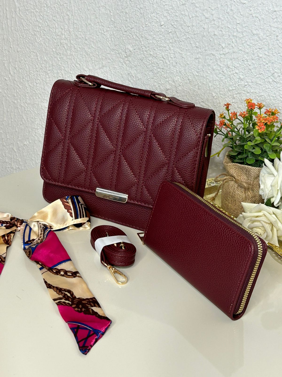 Kit Bolsa Matelasse+Carteira+Lenço (REF: MLY122)